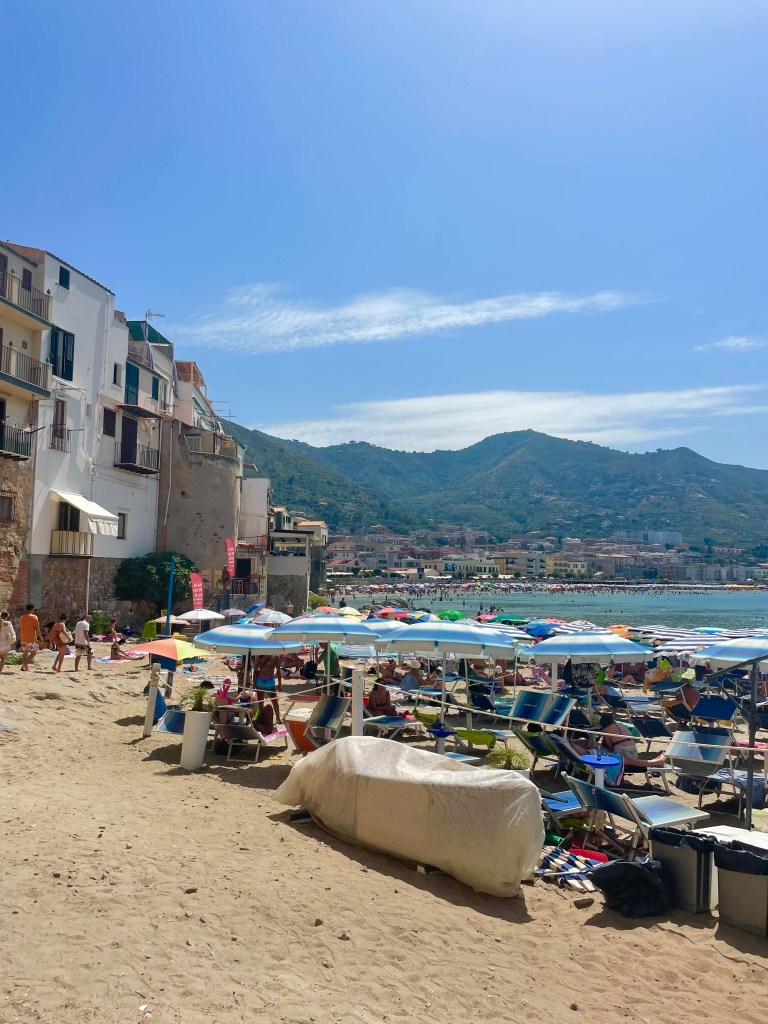 Mondello is a beautiful location to relax on the beach, which is about an hour bus ride from Palermo. Originally we planned to go to a beach club in Mondello, so we left at 9 am, but to our surprise, it wasn’t early enough to get a spot at the beach club. There is a strip of sand in front of all the beach clubs which personally I think was better than paying for the beach clubs since you had to pass that area from the beach club to get to the water.